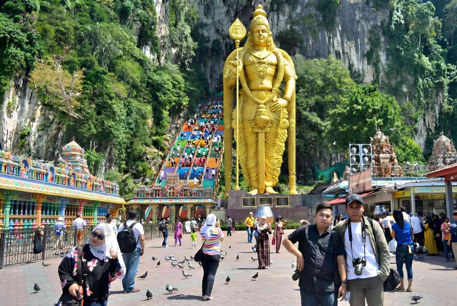Anda mau manjat tangga warna-warni sampai betis meledak? Silakan. Mau foto sama patung Dewa Murugan yang emasnya bikin silau itu? Monggo. Mau dikejar monyet? Bebas.
